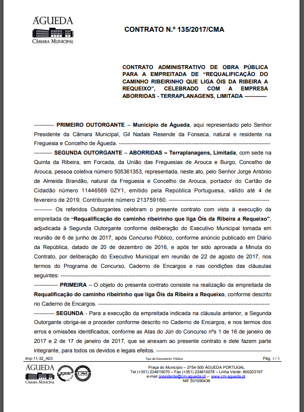 - O Contrato entre a Câmara de Águeda